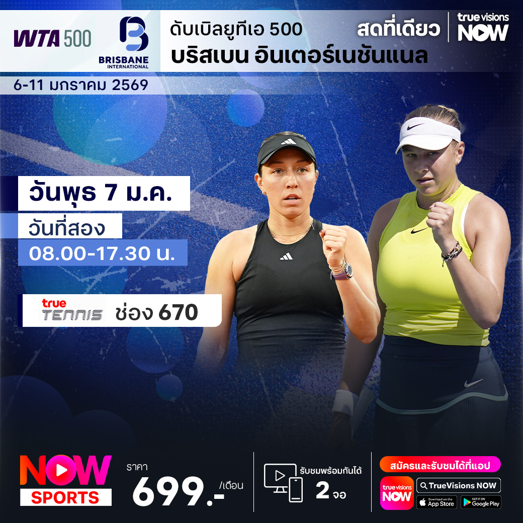 เทนนิสหญิง ดับเบิ้ลยูทีเอ ทัวร์ รายการแรกของปี 2026 ได้เริ่มขึ้นอย่างเป็นทางการแล้ว กับรายการ บริสเบน อินเตอร์แนชั่นแนล รายการระดับ WTA 500 นำโดย อารีนา ซาบาเลนก้า นักเทนนิสมือวางอันดับ 1 ของโลก, อแมนด้า อนิซิโมวา นักหวดสาวชาวอเมริกัน และ เอลินา รีบาคินา นักเทนนิสชื่อดังอดีตแชมป์ระดับแกรนด์สแลม ร่วมลุ้นว่าใครจะคว้าแชมป์ไปครอง ชมสด ครบทุกรอบ ที่ ทรูวิชั่นส์