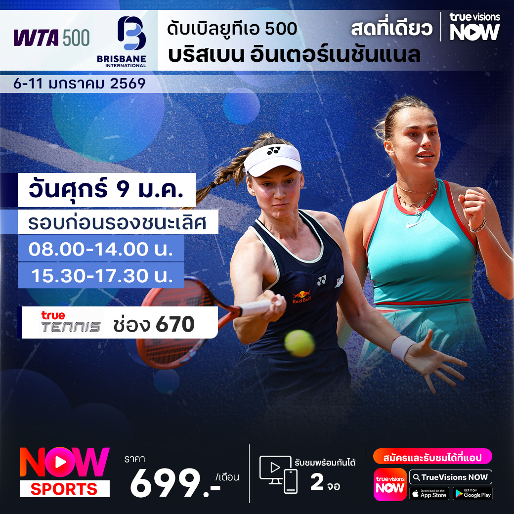 เทนนิสหญิง ดับเบิ้ลยูทีเอ ทัวร์ รายการแรกของปี 2026 ได้เริ่มขึ้นอย่างเป็นทางการแล้ว กับรายการ บริสเบน อินเตอร์แนชั่นแนล รายการระดับ WTA 500 นำโดย อารีนา ซาบาเลนก้า นักเทนนิสมือวางอันดับ 1 ของโลก, อแมนด้า อนิซิโมวา นักหวดสาวชาวอเมริกัน และ เอลินา รีบาคินา นักเทนนิสชื่อดังอดีตแชมป์ระดับแกรนด์สแลม ร่วมลุ้นว่าใครจะคว้าแชมป์ไปครอง ชมสด ครบทุกรอบ ที่ ทรูวิชั่นส์