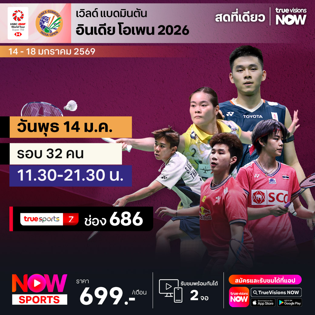มันส์กันต่อเนื่อง กับช่วงเปิดฤดูกาลใหม่ 2026 ของเวิลด์ แบดมินตัน รายการเก็บคะแนนสะสมโลก สัปดาห์นี้ แฟนๆ กีฬาลูกขนไก่ จะได้สัมผัสเกมสนุก เร้าใจ ของการแข่งขัน เวิลด์ ทัวร์ ซูเปอร์ 750 รายการ อินเดีย โอเพ่น ที่รวบรวมบรรดานักแบดมินตันซูเปอร์สตาร์ชั้นนำของโลกมาแข่งขันและลุ้นแชมป์กันอย่างคับคั่ง ส่งใจเชียร์ทีมแบดมินตันไทยให้ประกาศศักดา สู้กับมือระดับท็อปจากต่างชาติ ชมสด ครบทุกรอบ ที่ ทรูวิชั่นส์