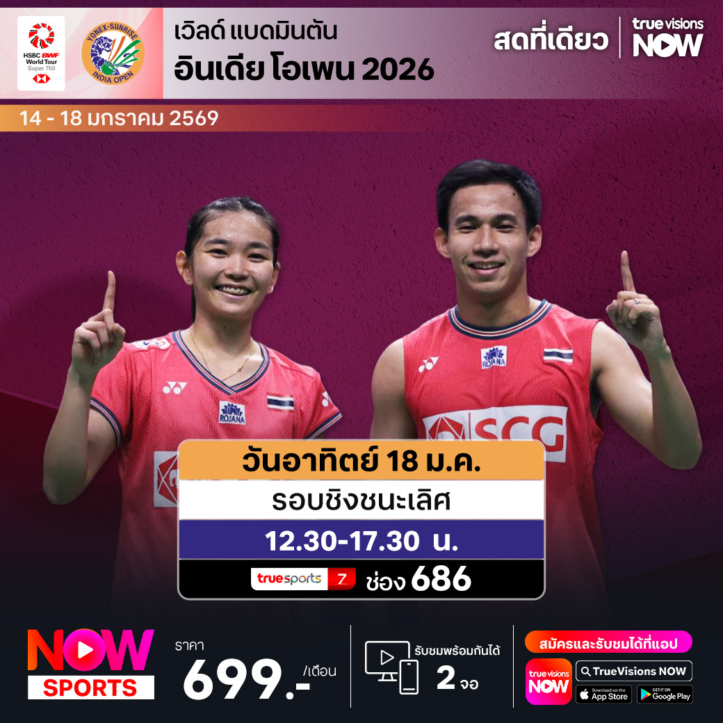 เวิลด์ แบดมินตัน รายการเก็บคะแนนสะสมโลก เวิลด์ ทัวร์ ซูเปอร์ 750 รายการ อินเดีย โอเพ่น ที่รวบรวมบรรดานักแบดมินตันซูเปอร์สตาร์ชั้นนำของโลกมาแข่งขันและลุ้นแชมป์กันอย่างคับคั่ง เดินทางมาถึงรอบรองชนะเลิศ ส่งใจเชียร์ "บาส" เดชาพล พัววรานุเคราะห์ กับ "เฟม" ศุภิสรา เพียวสามพราน เพื่อลุ้นคว้าแชมป์รายการนี้มาครองให้ได้ ชมสด ครบทุกรอบ ที่ ทรูวิชั่นส์
