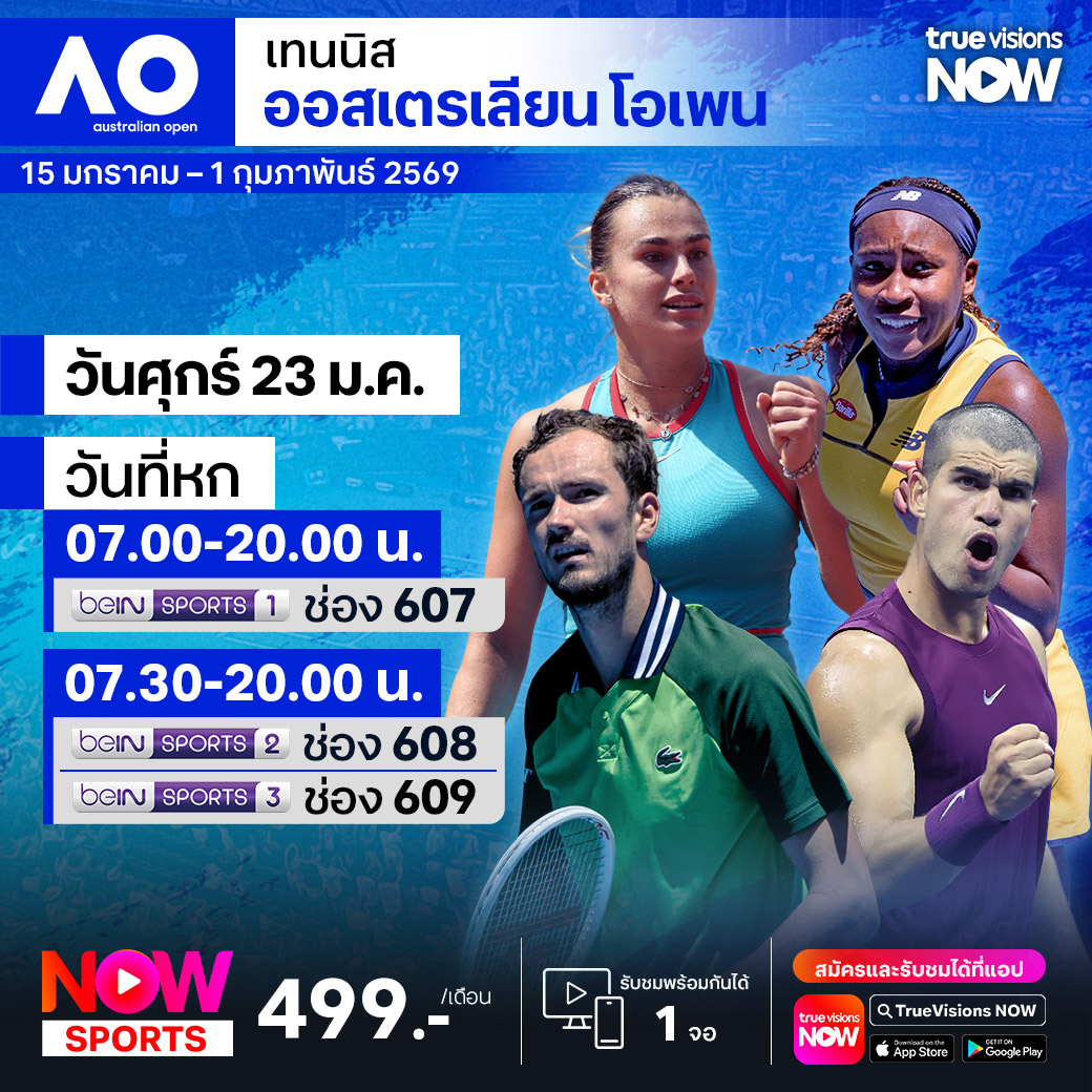 ศึกเทนนิส ออสเตรเลียน โอเพ่น แกรนด์สแลมแรกของปี 2026 เริ่มต้นอีกครั้ง กับการแข่งขันในสภาพอากาศที่ร้อนจัดของเมืองเมลเบิร์น ประเทศออสเตรเลีย แชมป์เก่า ยานนิค ซินเนอร์ ลงป้องกันแชมป์อีกครั้ง ร่วมด้วย คาร์ลอส อัลคาราซ และ โนวัค ยอโชวิช ส่วนในประเภทหญิงเดี่ยว ม้ามืดในปีก่อน เมดิสัน คีย์ ลงป้องกันแชมป์ พร้อมชนกับนักเทนนิสหญิงชื่อดังทั้ง อารีนา ซาบาเลนกา และ อิกา ซิออนเทค ร่วมลุ้นว่าใครจะคว้าแชมป์ไปครองทั้งประเภทชายและประเภทหญิง ชมสด ครบทุกรอบ ที่ ทรูวิชั่นส์