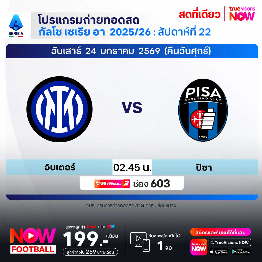 Inter vs Pisa เวลา 02.45-04.45 ทางช่องTPF 3(603)