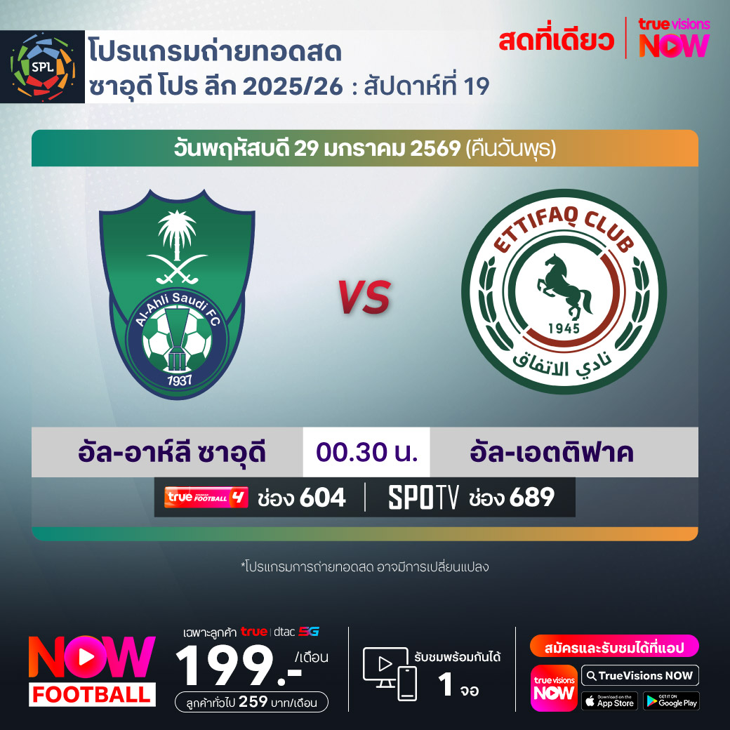 Al Ahli vs Al Ettifaq เวลา 00.30-02.30 ทางช่องTPF 4(604)/ SPOTV (689)