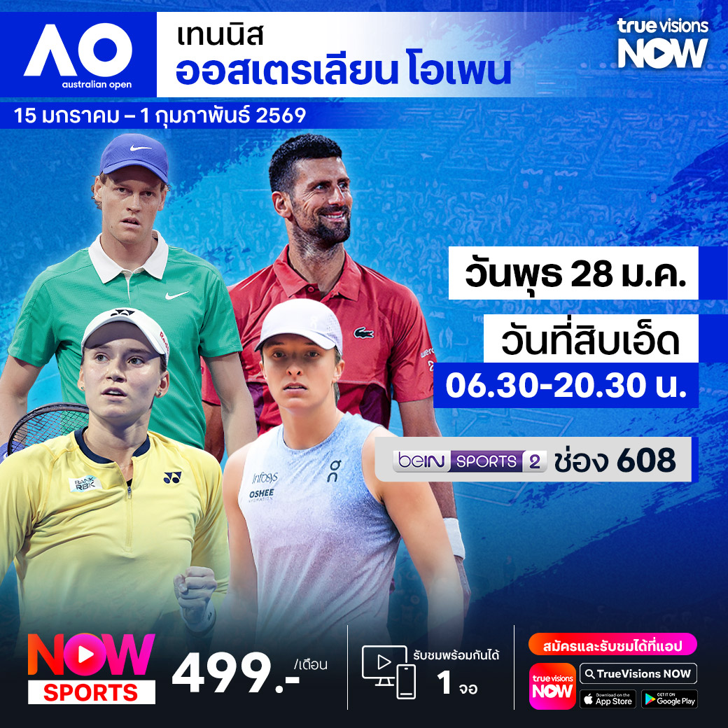 ศึกเทนนิส ออสเตรเลียน โอเพ่น แกรนด์สแลมแรกของปี 2026 เริ่มต้นอีกครั้ง กับการแข่งขันในสภาพอากาศที่ร้อนจัดของเมืองเมลเบิร์น ประเทศออสเตรเลีย แชมป์เก่า ยานนิค ซินเนอร์ ลงป้องกันแชมป์อีกครั้ง ร่วมด้วย คาร์ลอส อัลคาราซ และ โนวัค ยอโชวิช ส่วนในประเภทหญิงเดี่ยว ม้ามืดในปีก่อน เมดิสัน คีย์ ลงป้องกันแชมป์ พร้อมชนกับนักเทนนิสหญิงชื่อดังทั้ง อารีนา ซาบาเลนกา และ อิกา ซิออนเทค ร่วมลุ้นว่าใครจะคว้าแชมป์ไปครองทั้งประเภทชายและประเภทหญิง ชมสด ครบทุกรอบ ที่ ทรูวิชั่นส์
