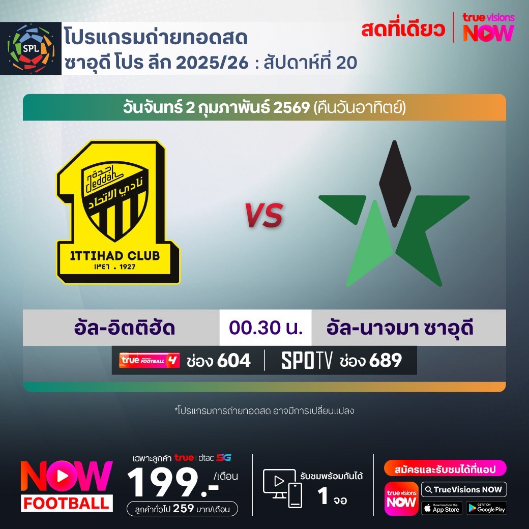 Al Ittihad vs Al Najmah เวลา 00.30-02.30 ทางช่องTPF 4(604) / SPOTV (689)