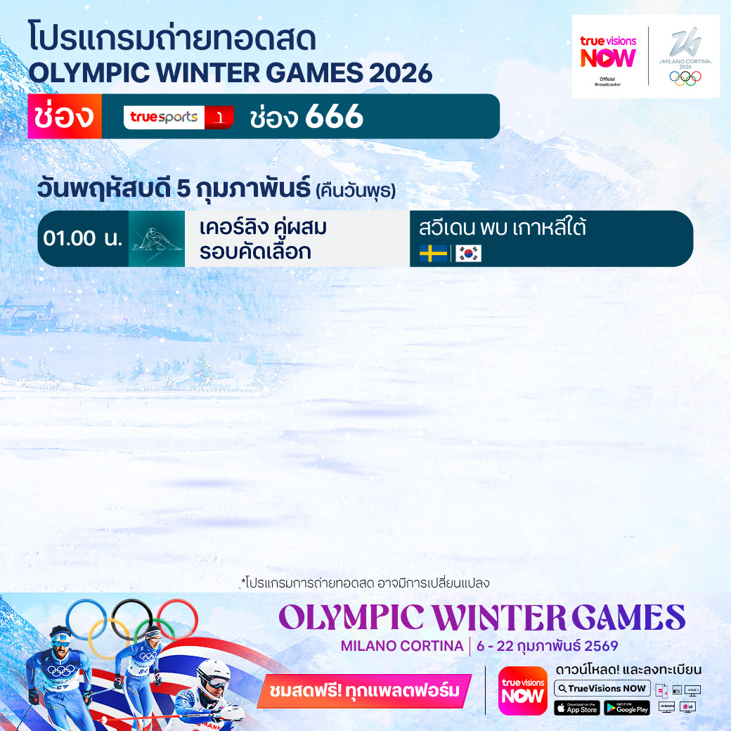 เคอร์ลิง คู่ผสมรอบคัดเลือก สวีเดน พบ เกาหลีใต้ เวลา 01.00 ทางช่อง TS 1 (666)