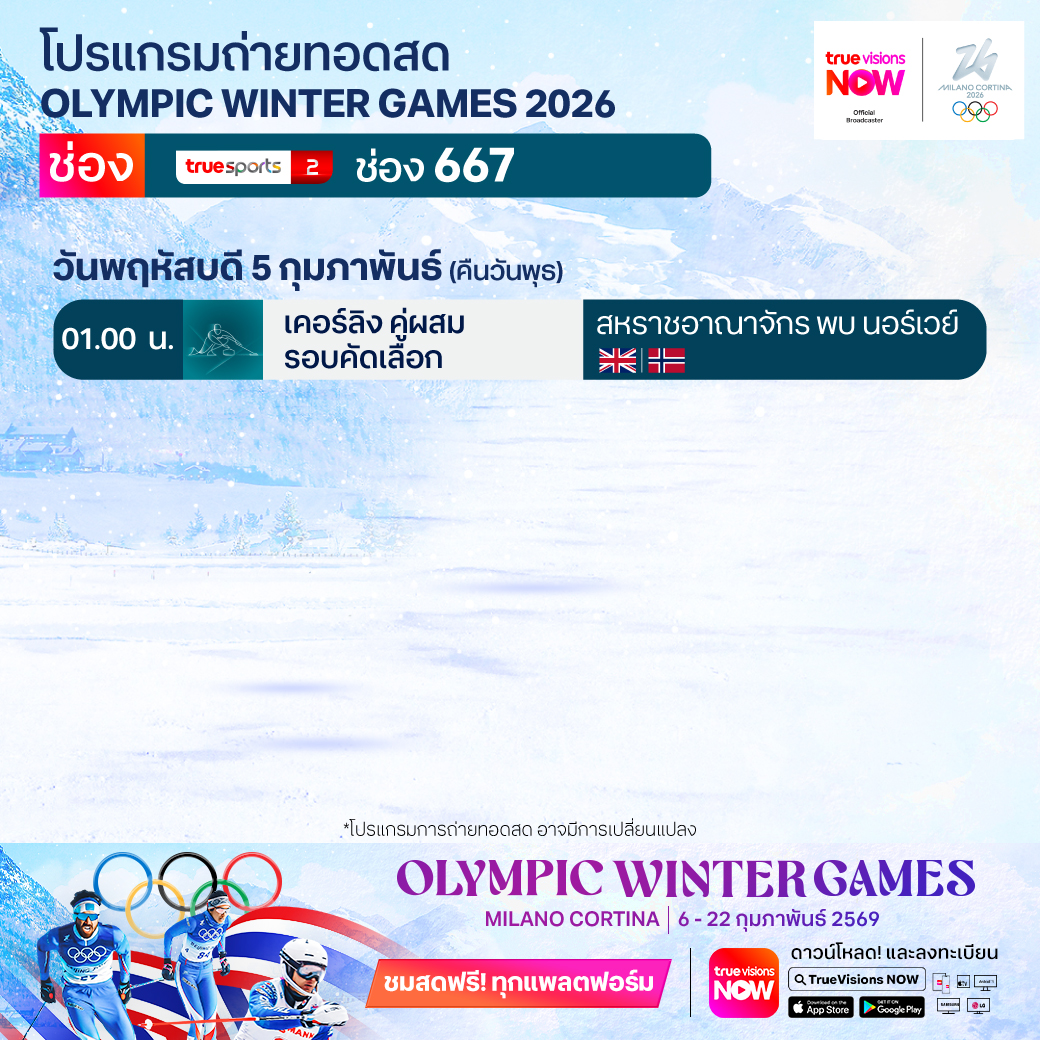 เคอร์ลิง คู่ผสมรอบคัดเลือก สหราชอาณาจักร พบ นอร์เวย์ เวลา 01.00 ทางช่อง TS 2 (667)