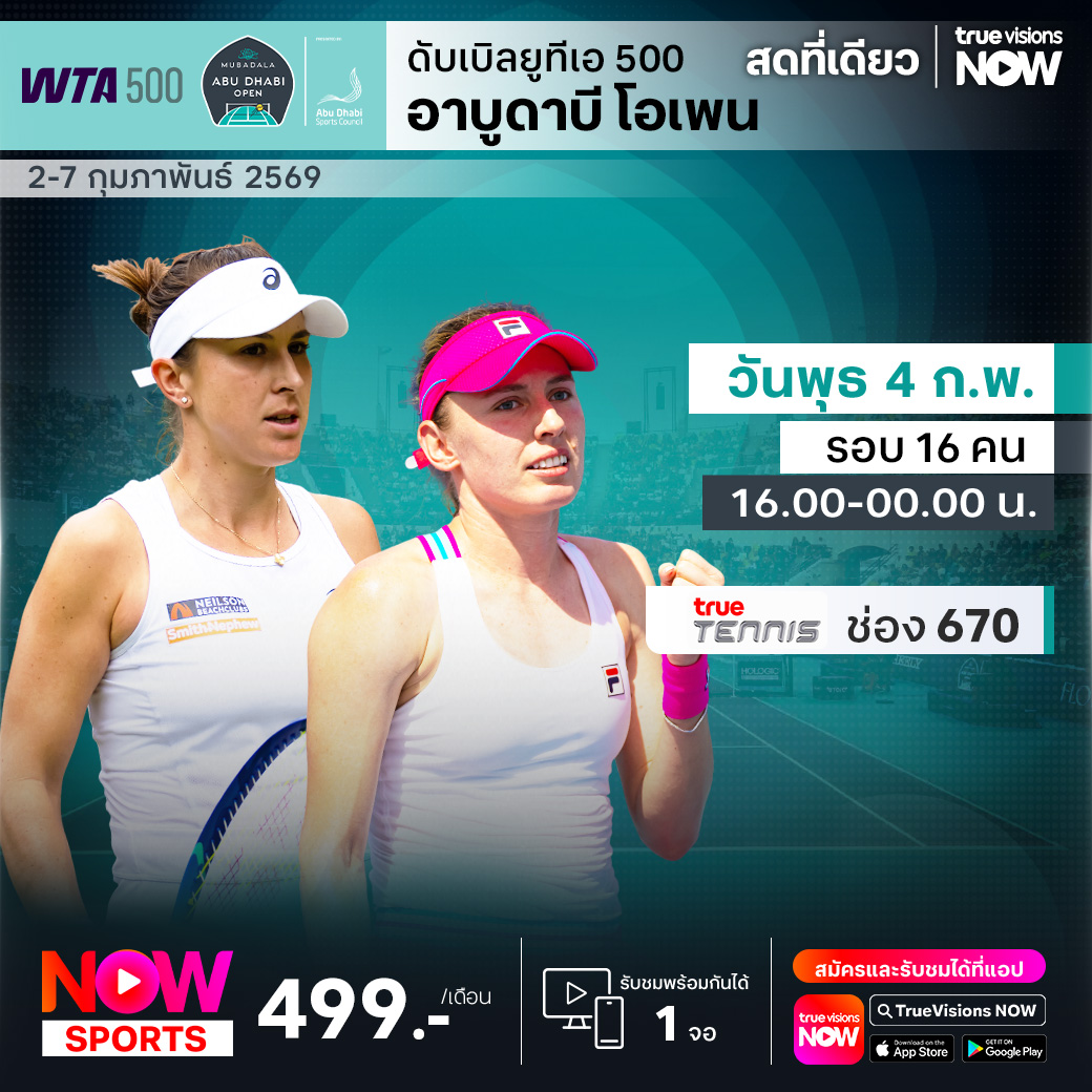 เทนนิสหญิง ดับเบิ้ลยูทีเอ ทัวร์ เข้าสู่ช่วงการแข่งขันในเดือนกุมภาพันธ์ ซึ่งเป็นการแข่งขันในโซนตะวันออกกลาง สัปดาห์นี้พบกับรายการ อาบูดาบี โอเพ่น ที่เมืองอาบูดาบี ประเทศสหรัฐอาหรับเอมิเรตส์ ร่วมด้วยนักเทนนิสหญิงมือระดับโลกแบบจัดเต็ม ร่วมลุ้นว่าใครจะคว้าแชมป์รายการนี้ไปครอง ชมสด ครบทุกรอบ ที่ ทรูวิชั่นส์