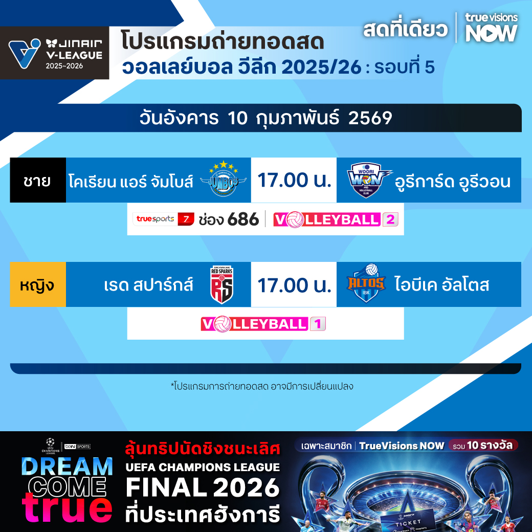โคเรียน แอร์ จัมโบส์ พบ อูรีการ์ด อูรีวอน เวลา 17.00 ทางช่อง TS 7 (686) / Volleyball 2