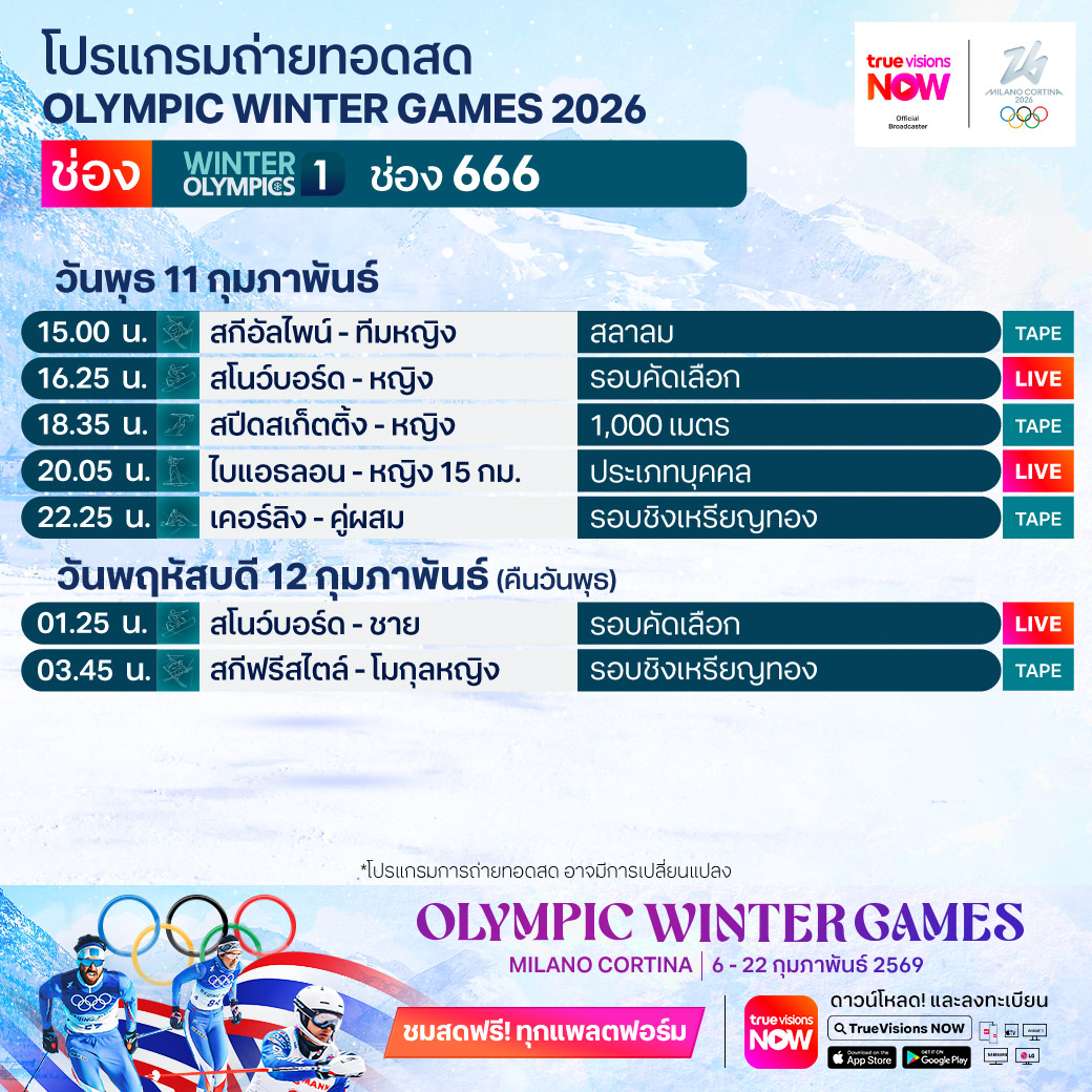 ทางช่อง WINTER OLYMPICS 1 (666)