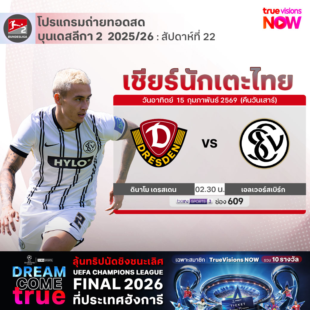 Dynamo Dresden vs Elversberg เวลา 02.30-04.30 ทางช่อง beIN 3 (609)