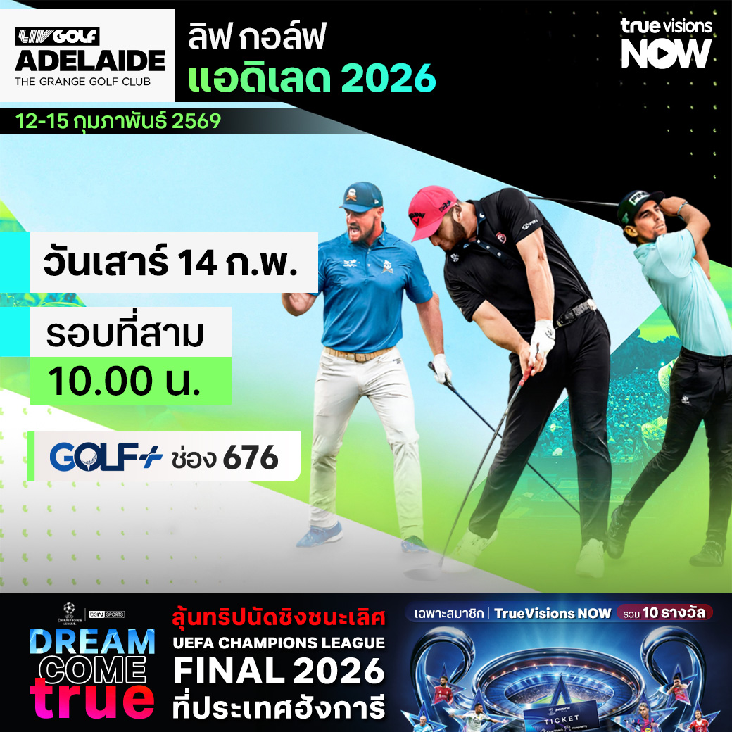 ลิฟ กอล์ฟ รายการที่ 2 ของฤดูกาล แอดิเลด 2026 ประเทศออสเตรเลีย ตื่นตา ตื่นใจกับลีลาของสุดยอดโปรอย่าง จอห์น ราห์ม, ไบรสัน ดีแชมโบ, ดัสติน จอห์นสัน รวมทั้งขวัญใจเจ้าถิ่นอย่าง แคเมอรอน สมิธ, มาร์ค ลีชแมน ลุ้นกันสนุก ทั้งแชมป์ประเภทบุคคล และแชมป์ประเภททีม สด จากสนาม เดอะ แกรนจ์ กอล์ฟ คลับ ครบทั้ง 4 วัน