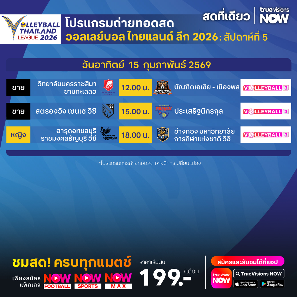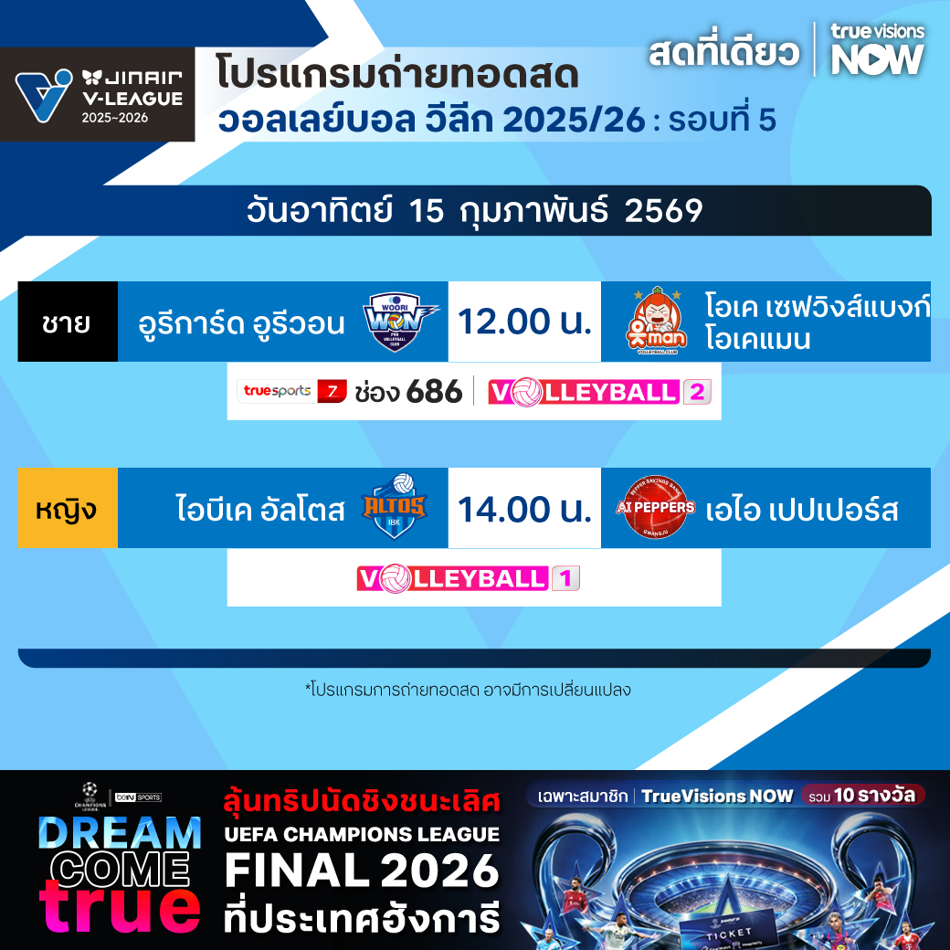 อูรีการ์ด อูรีวอน พบ โอเค เซฟวิงส์แบงก์ โอเคแมน เวลา 12.00 ทางช่อง TS 7 (686) / Volleyball 2