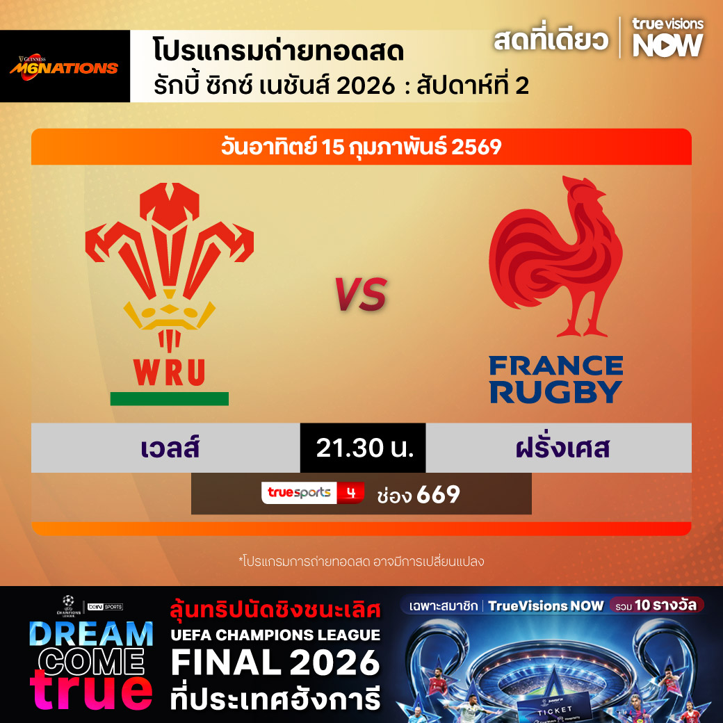 เวลส์ พบ ฝรั่งเศส เวลา 21.30 ทางช่อง TS 4 (669)