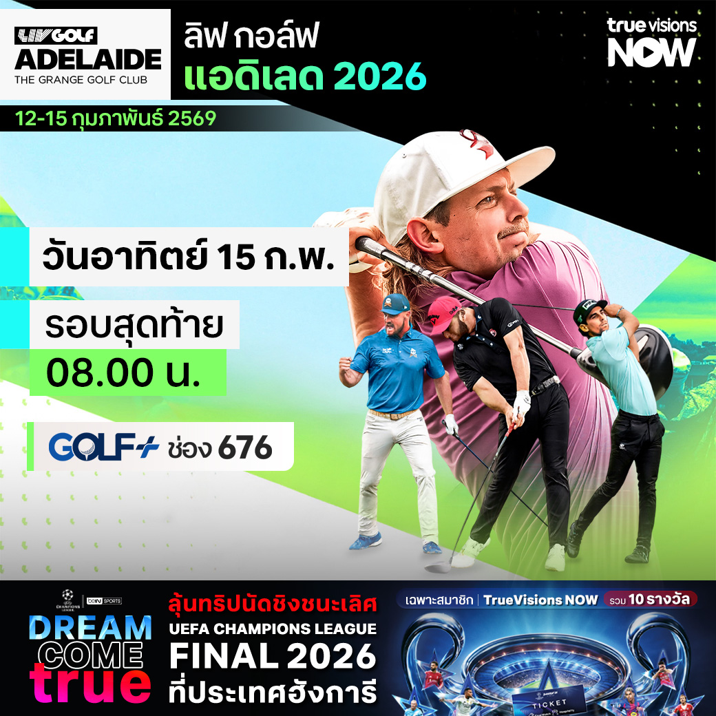 ลิฟ กอล์ฟ รายการที่ 2 ของฤดูกาล แอดิเลด 2026 ประเทศออสเตรเลีย ตื่นตา ตื่นใจกับลีลาของสุดยอดโปรอย่าง จอห์น ราห์ม, ไบรสัน ดีแชมโบ, ดัสติน จอห์นสัน รวมทั้งขวัญใจเจ้าถิ่นอย่าง แคเมอรอน สมิธ, มาร์ค ลีชแมน ลุ้นกันสนุก ทั้งแชมป์ประเภทบุคคล และแชมป์ประเภททีม สด จากสนาม เดอะ แกรนจ์ กอล์ฟ คลับ ครบทั้ง 4 วัน