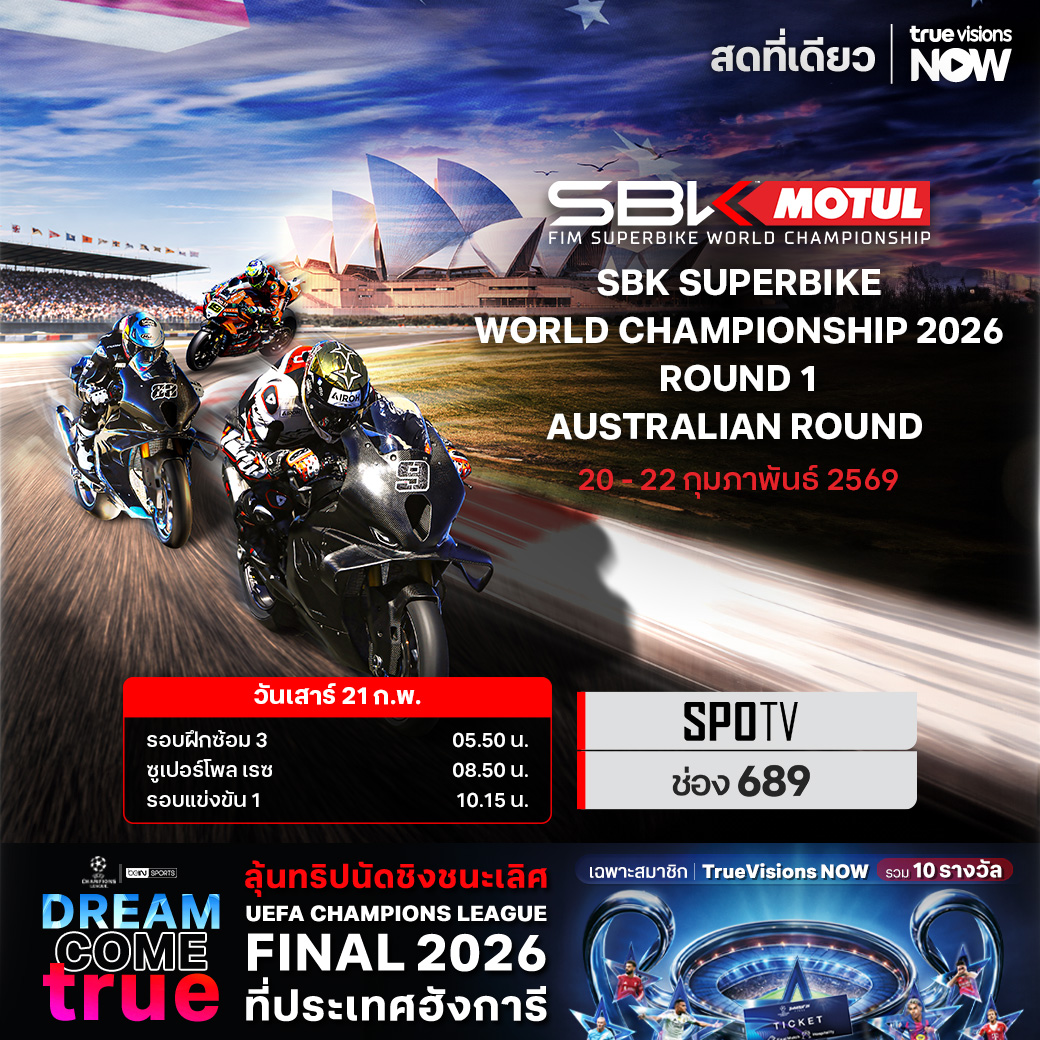 แฟนๆ พร้อม สนามพร้อม ทีมแข่งและนักแข่งก็พร้อมลุย กับการเปิดฉากสนามแรกของฤดูกาล ศึกเจ้าความเร็ว ซูเปอร์ไบค์ เวิลด์ แชมเปี้ยนชิพ 2026 ระเบิดความมันส์ที่สนามสุดท้าทายอย่าง ฟิลลิปไอส์แลนด์ กรังด์ปรีซ์ เซอร์กิต ประเทศออสเตรเลีย เหล่าบรรดานักบิดระดับโลกคับคั่ง ออกมาล่าแชมป์แรกของปีและเก็บคะแนนสะสม ลุ้นกันสุดตัว ที่ ทรูวิชั่นส์