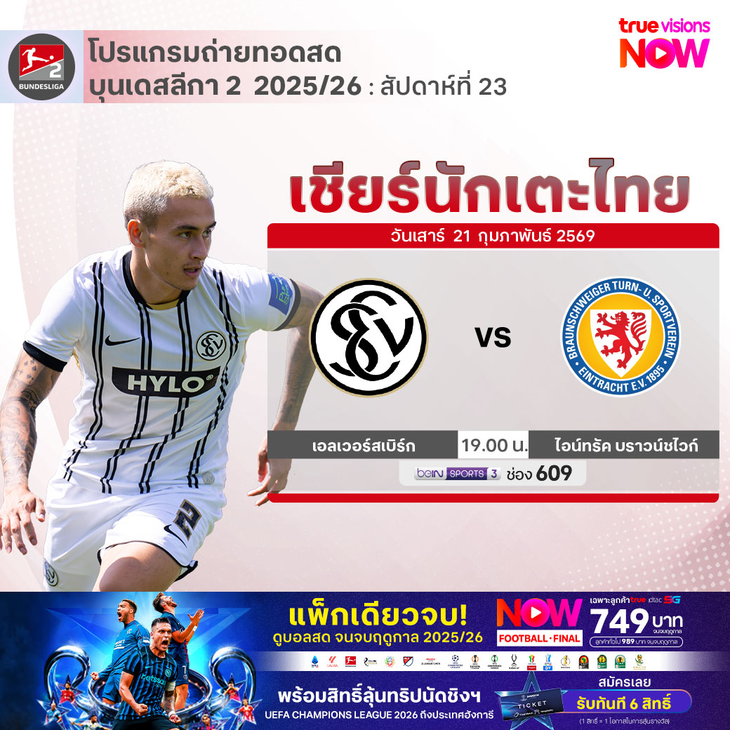 Elversberg vs Braunschweig เวลา 19.00-21.00 ทางช่อง beIN 3 (609)
