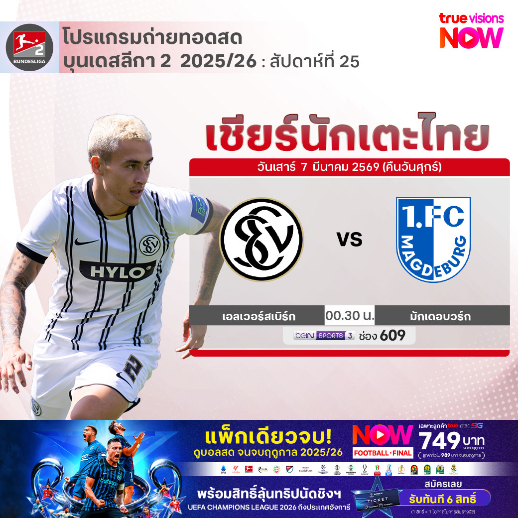 Elversberg vs Magdeburg เวลา 00.30-02.30 ทางช่อง beIN 3 (609)