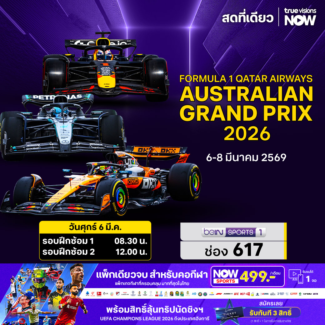 ถนนทุกสายมุ่งหน้าสู่ศึกเจ้าความเร็วอันดับ 1 ของโลก ฟอร์มูล่า วัน พร้อมแล้ว กับการเปิดฉากดวลสนามแรกของปี 2026 ในรายการ ออสเตรเลียน กรังด์ปรีซ์ ที่สังเวียน เมลเบิร์น พาร์ค ประเทศออสเตรเลีย จับตาดูโฉมใหม่ของบรรดาทีมต่างๆ ทั้งแชมป์เก่า, ผู้ท้าชิง และทีมน้องใหม่ กับกฎและกติกาที่มีการเปลี่ยนแปลงล่าสุด ใครจะทำผลงานในสนามแรกได้ดีกว่ากัน ร่วมลุ้นกันสดๆ ครบทุกช่วงการแข่งขัน ที่ ทรูวิชั่นส์