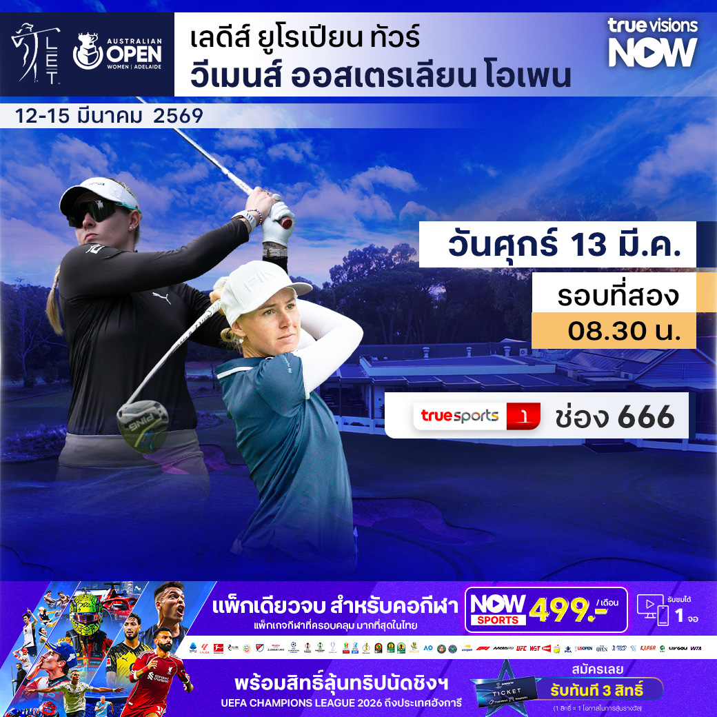 กอล์ฟหญิง เลดี้ส์ ยูโรเปี้ยน ทัวร์ สัปดาห์นี้ พบกับรายการแห่งศักดิ์ศรี วีเมนส์ ออสเตรเลียน โอเพ่น ที่สนาม คูยองก้า กอล์ฟ คลับ ที่เมืองแอดดิเลด ประเทศออสเตรเลีย มือท็อปเทนของทัวร์มาร่วมดวลกันคึกคัก ร่วมด้วยแชมป์เมเจอร์ที่เป็นโปรเจ้าถิ่นอีกหลายคน ร่วมเชียร์โปรสาวไทย นำโดย "โปรมาย" ตรีฉัตร จีนกลับ สู้สุดใจเพื่อลุ้นตำแหน่งแชมป์ ชมสด เอ็กซ์คลูซีฟ ที่เดียว ที่ ทรูวิชั่นส์