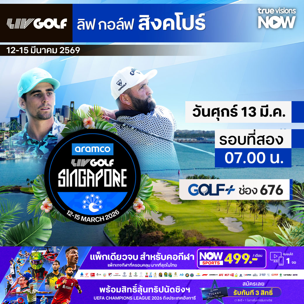 ลิฟ กอล์ฟ 2026 สัปดาห์นี้พบกับ ลิฟ กอล์ฟ สิงคโปร์ เดือดแน่นอน ที่สนาม เซนโตซ่า กอล์ฟ คลับ ประเทศสิงคโปร์ เหล่าซูเปอร์สตาร์ตัวท็อป พร้อมโชว์ทีเด็ดในการทำสกอร์เหนือคู่แข่ง เพื่อเป้าหมายนำชัยชนะมาสู่ทีมและคะแนนส่วนบุคคลที่มีเงินรางวัลมหาศาล ร่วมลุ้นกันว่าใครจะทะลุไปถึงตำแหน่งแชมป์ ทั้งประเภททีมและบุคคล ชมสด ครบทุกรอบ ที่ ทรูวิชั่นส์