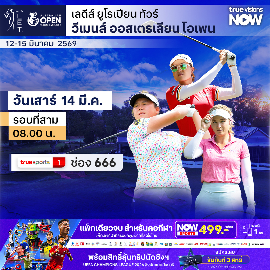 กอล์ฟหญิง เลดี้ส์ ยูโรเปี้ยน ทัวร์ สัปดาห์นี้ พบกับรายการแห่งศักดิ์ศรี วีเมนส์ ออสเตรเลียน โอเพ่น ที่สนาม คูยองก้า กอล์ฟ คลับ ที่เมืองแอดดิเลด ประเทศออสเตรเลีย มือท็อปเทนของทัวร์มาร่วมดวลกันคึกคัก ร่วมด้วยแชมป์เมเจอร์ที่เป็นโปรเจ้าถิ่นอีกหลายคน ร่วมเชียร์โปรสาวไทย นำโดย "โปรมาย" ตรีฉัตร จีนกลับ สู้สุดใจเพื่อลุ้นตำแหน่งแชมป์ ชมสด เอ็กซ์คลูซีฟ ที่เดียว ที่ ทรูวิชั่นส์