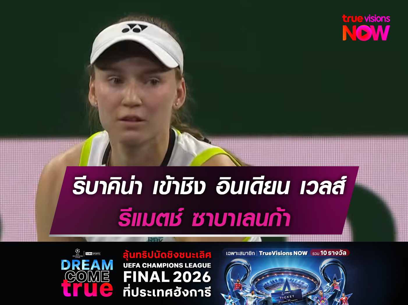 WTA1000 บีเอ็นพี พาริบาส โอเพ่น วันที่ 7-15 มีนาคมนี้ ถ่ายทอดสดผ่านแอพพลิเคชั่น ทรูวิชั่นส์ นาว ช่อง ทรูเมนนิส (670)