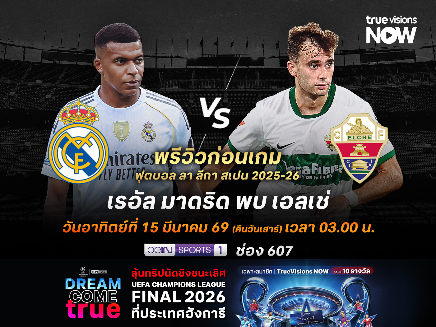 ถ่ายทอดสดทาง : beIN Sports 1 (ช่อง 607)