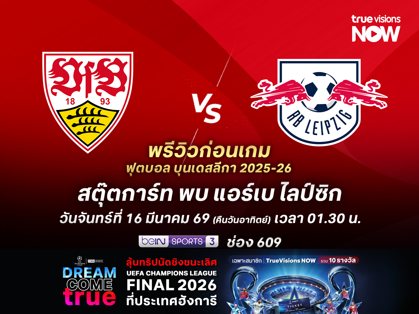เวลา : 01.30 น. วันจันทร์ที่ 16 มีนาคม 2569 (แข่งคืนวันอาทิตย์)