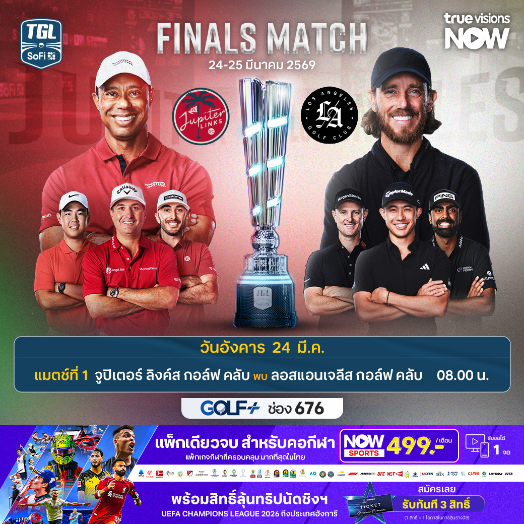 มันส์จนหยดสุดท้าย แฟนๆ กีฬากอล์ฟพลาดไม่ได้ กับรอบชิงชนะเลิศ ทูมอร์โรว์ กอล์ฟ ลีก (TGL League) ซีซั่น 2 ได้ 2 ทีมที่จะวัดฝีมือกัน 2 เกมสำคัญเพื่อตัดสินแชมป์ ระหว่างทีม จูปิเตอร์ ลิงค์ กอล์ฟ คลับ นำโดย ไทเกอร์ วู้ดส์ และลูกทีมอย่าง ทอม คิม, อัคเชย์ บาเทีย และ แม็กซ์ โฮม่า พบกับทีม แอลเอ กอล์ฟ คลับ ที่นำโดย คอลลิน โมริคาวะ, ทอมมี่ ฟลีตวู้ด, จัสติส โรส และ ซาฮิท ทีกาล่า ใครจะคว้าแชมป์ไปครอง ชมสด ที่ ทรูวิชั่นส์