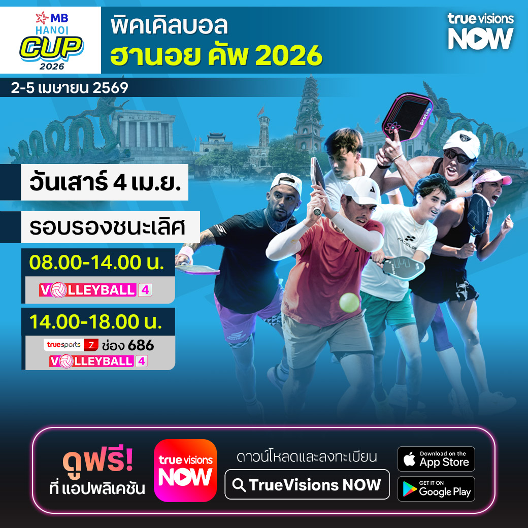 สดใหม่ สนุกและน่าสนใจ กับเทรนด์กีฬาที่กำลังได้รับความนิยมอย่างกว้างขวางทั่วโลก สัปดาห์นี้จะพาแฟนๆ ไปสัมผัสเกมระดับนานาชาติของ พิคเคิลบอล หนึ่งในแร็คเก็ตสปอร์ตที่ต้องมีทักษะผสมกันระหว่าง เทนนิส, แบดมินตัน และ เทเบิลเทนนิส ในรายการ ฮานอย คัพ ที่ได้รับการรับรองจากสมาคมพิคเคิลบอลอาชีพ (PPA) ชมสด จุใจ จากกรุงฮานอย ประเทศเวียดนาม ที่ ทรูวิชั่นส์