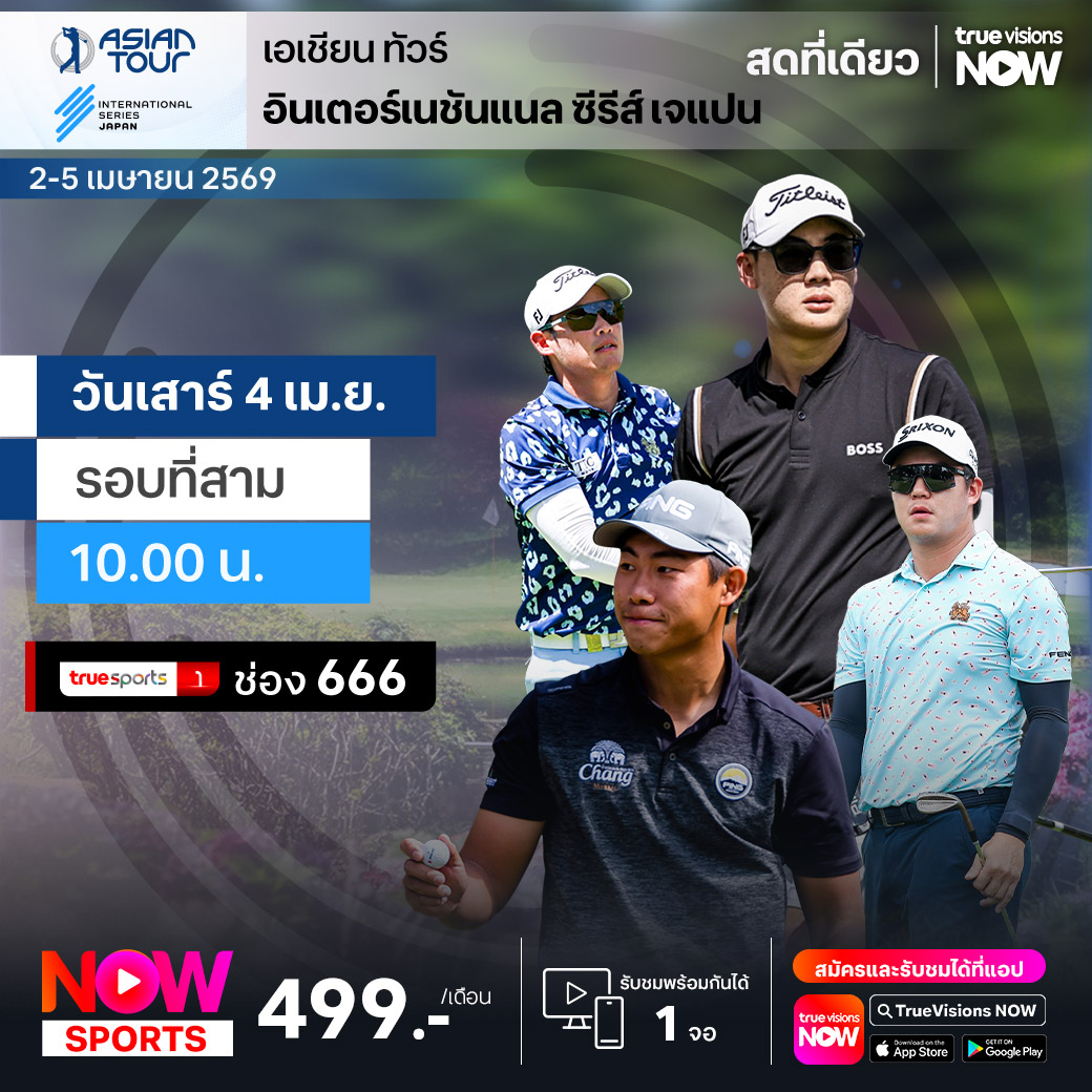 กอล์ฟ เอเชียนทัวร์ ฤดูกาล 2026 สัปดาห์นี้ ไปสัมผัสเกมกอล์ฟระดับโลก ที่แดนอาทิตย์อุทัย ประเทศญี่ปุ่น กับรายการ อินเตอร์เนชั่นแนล ซีรี่ส์ แจแปน ที่สนาม ตาเลโดเนี่ยน กอล์ฟ คลับ ในเมืองชิบะ กับเงินรางวัลรวม 2,000,000 เหรียญสหรัฐฯ หรือประมาณ 65 ล้านบาท ร่วมเชียร์โปรหนุ่มไทยให้ทำสกอร์เบียดแย่งแชมป์กับโปรแถวหน้าของทัวร์จากทั่วโลก ชมสด ครบทุกรอบ ที่ ทรูวิชั่นส์
