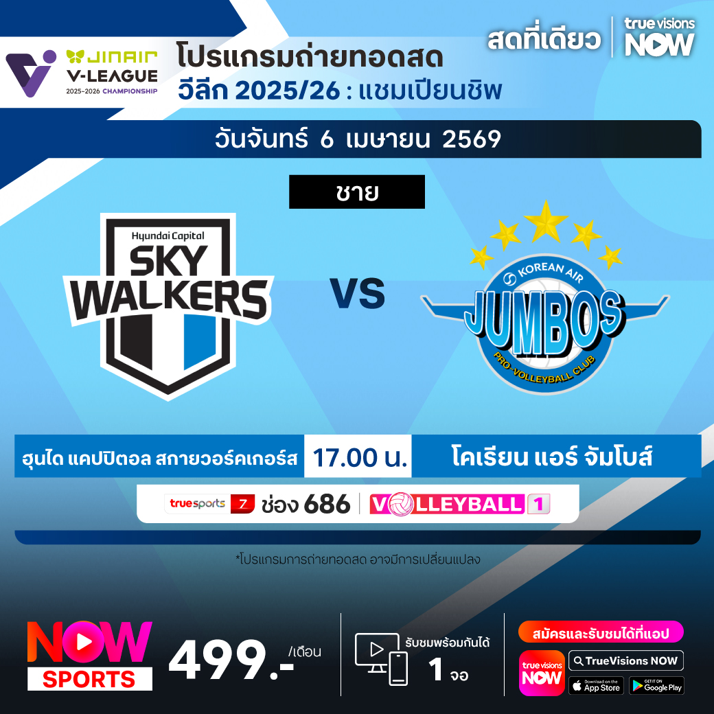 ฮุนได แคปปิตอล สกายวอร์คเกอร์ส พบ โคเรียน แอร์ จัมโบส์ เวลา 17.00 ทางช่อง TS 7 (686) / Volleyball 1