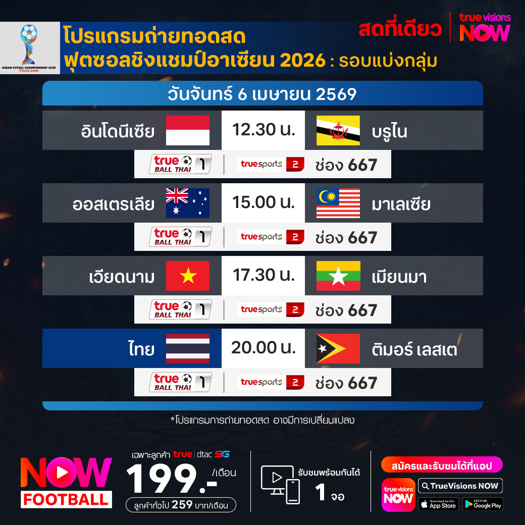 ไทย พบ ติมอร์ เลสเต เวลา 20.00-22.00 ทางช่อง True Ball Thai 1 /TS 2 (667)
