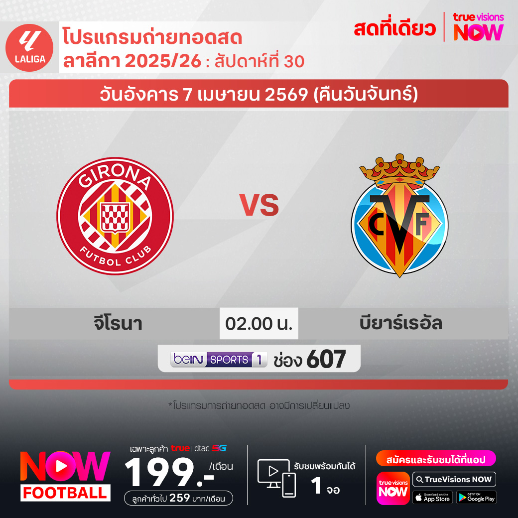 Girona vs Villarreal เวลา 02.00-04.00 ทางช่อง beIN 1 (607)