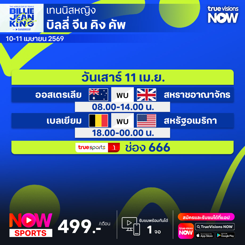 วันนี้มีอะไรดูที่ ทรูวิชั่นส์ ประจำวันเสาร์ที่ 11 เมษายน 69 ยังคงมีกีฬาที่น่าสนใจให้ได้ตามลุ้นตามเชียร์กันเหมือนเดิม โดยในส่วนของฟุตบอลยังมีศึก ลา ลีกา สเปน, บุนเดสลีกา เยอรมนี, กัลโช่ เซเรีย อา อิตาลี, เอ-ลีก ออสเตรเลีย และ ซาอุดิ โปร ลีก ให้ได้ตามเชียร์กันต่อ ส่วนกีฬาอื่นๆ ยังมี เทนนิสหญิง ดับเบิ้ลยูทีเอ ทัวร์ รายการ ออสเตรีย เลดี้ส์ ลินซ์, เทนนิสทีมหญิงชิงแชมป์โลก บิลลี่ จีน คิง คัพ ไฟนอลส์, กอล์ฟ เดอะ มาสเตอร์ส ทัวร์นาเมนท์, เคแอลพีจีเอ ทัวร์ รายการ ไอเอ็ม ไฟแนนเชียล กรุ๊ป โอเพ่น, แบดมินตัน เอเชีย แชมเปี้ยนชิพ และ ยูโรเปี้ยน แชมเปี้ยนชิพ, เมเจอร์ ลีก เบสบอล, ยูเอฟซี 327 และ มวยไทย ดิ อัลติเมท มวยไทย เอ็กซ์พีเรียนซ์ งานนี้ ทรูวิชั่นส์ จัดเต็มให้ชมกันถึงบ้าน