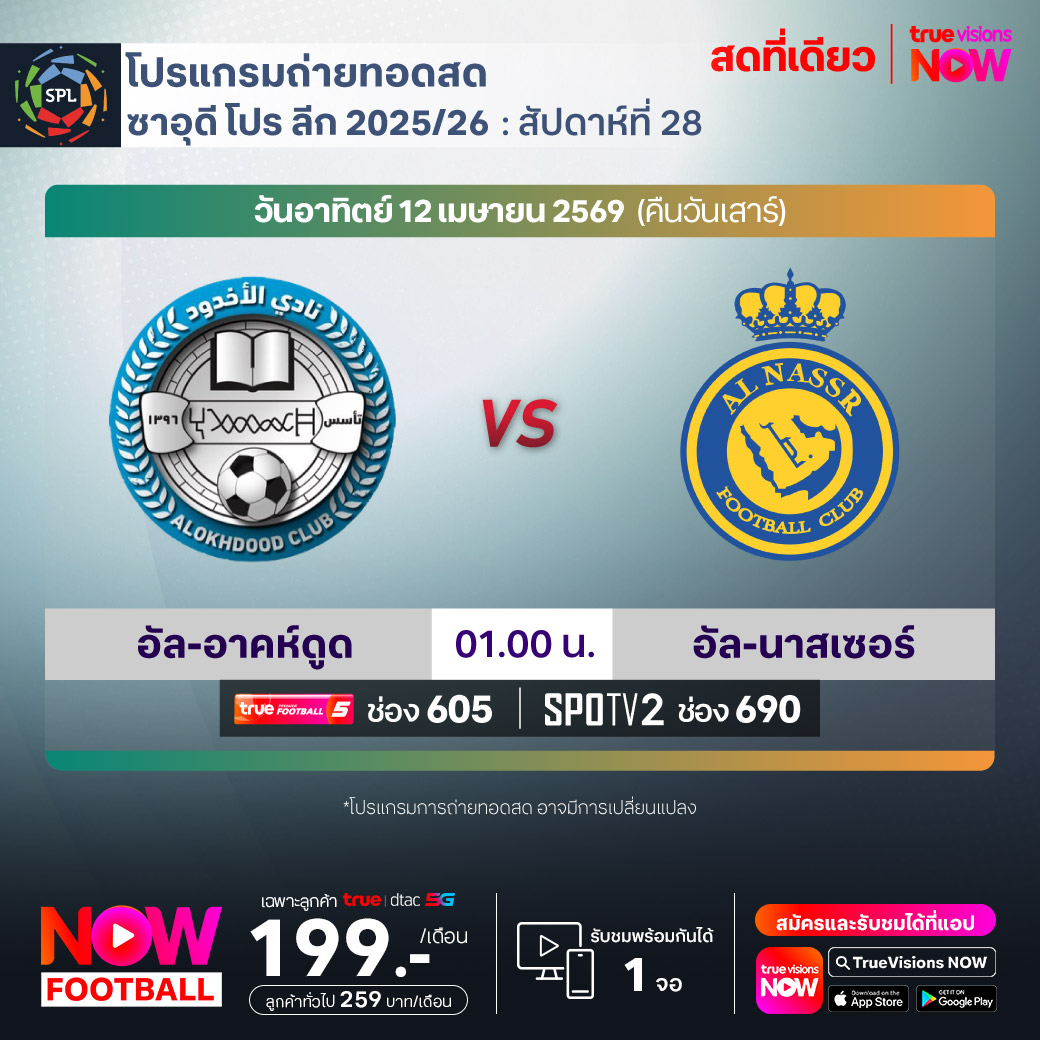 อัล-อาคห์ดูด พบ อัล-นาสเซอร์ เวลา 01.00-03.00 ทางช่องTPF 5(605) / SPOTV2 (690)