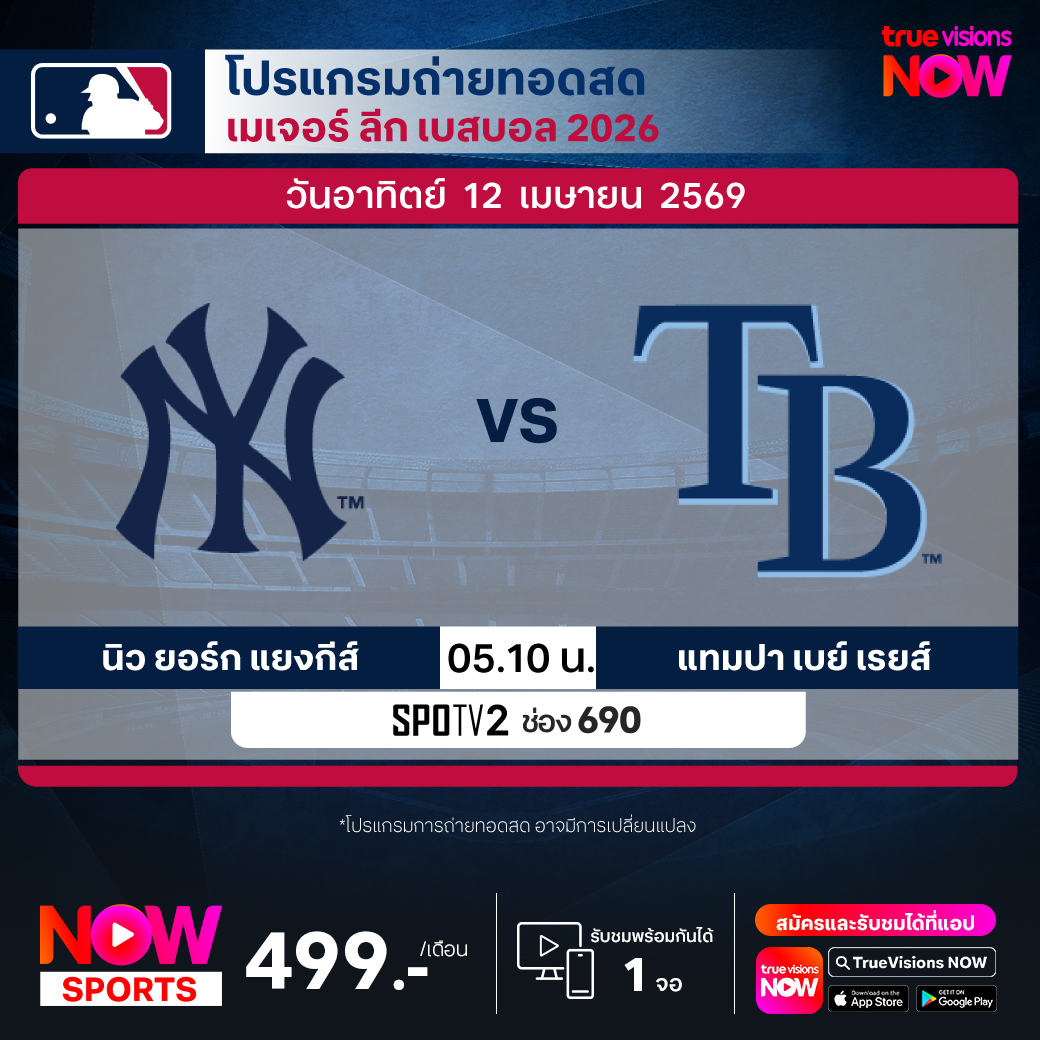 นิวยอร์ก แยงกีส์ พบ แทมปา เบย์ เรยส์ เวลา 05.10 ทางช่อง SPOTV2 (690)