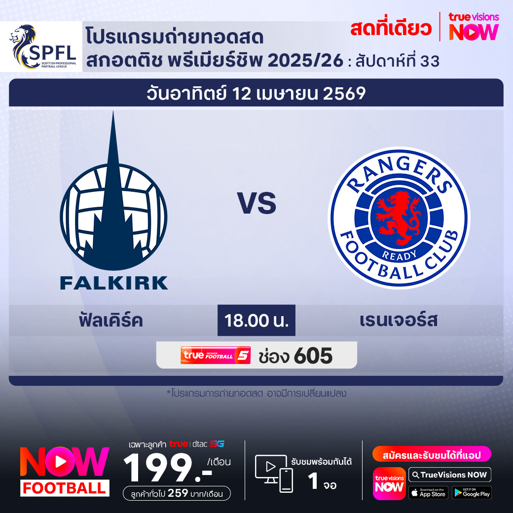 ฟัลเคิร์ค พบ เรนเจอร์ส เวลา 18.00-20.00 ทางช่อง TPF 5 (605)