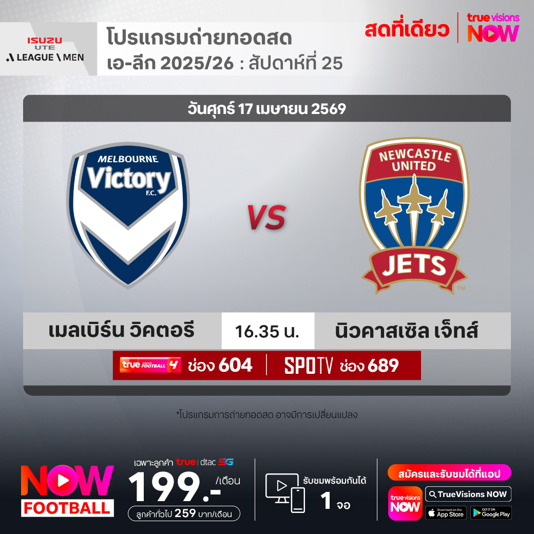 เมลเบิร์น วิคตอรี่ พบ นิวคาสเซิล เจ็ทส์ เวลา 16.35-18.35 ทางช่องTPF 4(604) / SPOTV (689)