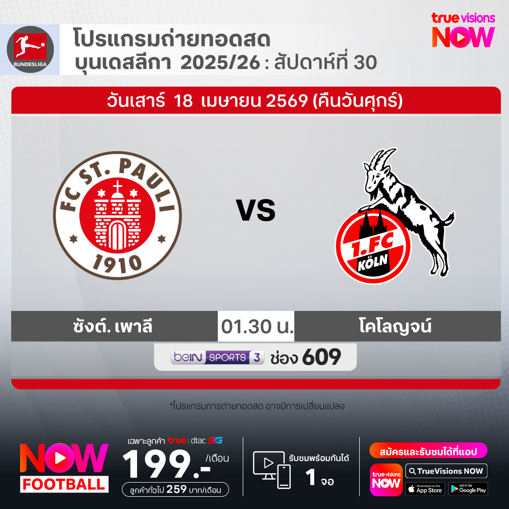 ซังต์. เพาลี พบ โคโลญจน์ เวลา 01.30-03.30 ทางช่อง beIN 3 (609)