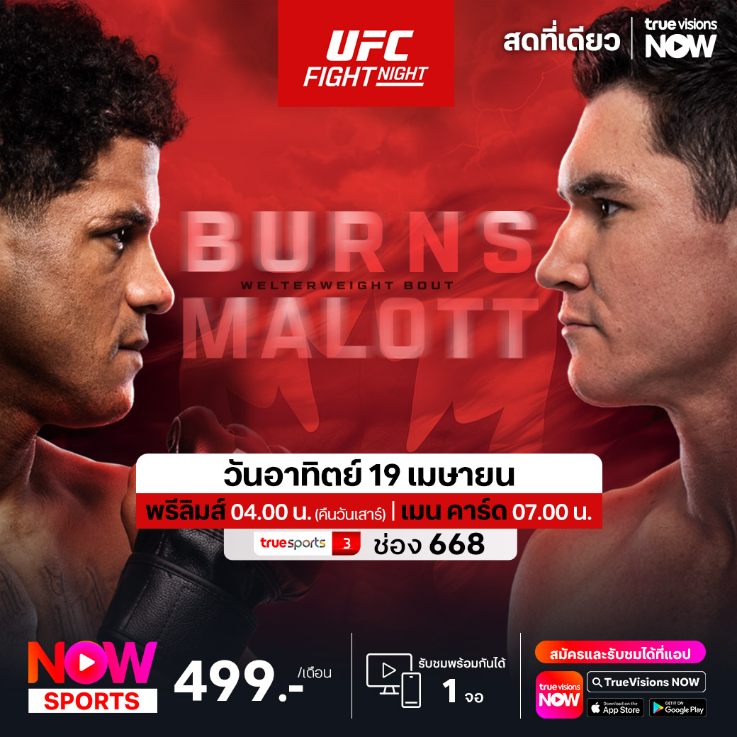 เพื่อติดตามการพิสูจน์กันระหว่าง กิลเบิร์ต เบิร์น อดีตผู้ท้าชิงรุ่นเวลเตอร์เวตจากบราซิล พบกับ ไมค์ มัลล็อตต์ นักสู้ขวัญใจเจ้าถิ่น ร่วมด้วยรุ่นแบนตั้มเวต ไคเลอร์ ฟิลลิปส์ จากสหรัฐฯ พบ ชาร์ลส์ จอร์แดน นักสู้แคนาดา ชมสด ที่ ทรูวิชั่นส์