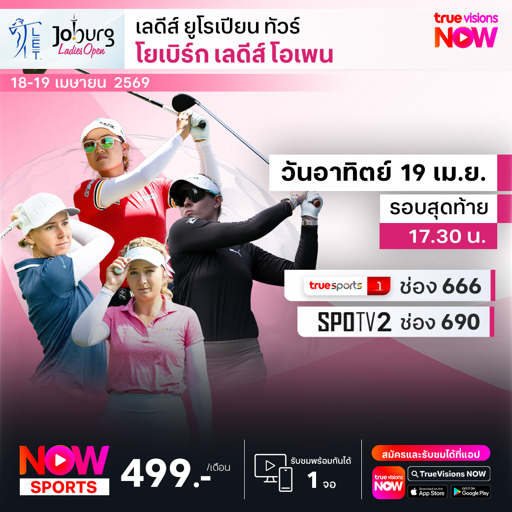 กอล์ฟหญิง เลดี้ส์ ยูโรเปี้ยน ทัวร์ ฤดูกาล 2026 สัปดาห์นี้ ข้ามทวีปไปที่แอฟริกาใต้ กับบรรยากาศสวยงามแบบซาฟารี ในการแข่งขันรายการ โจเบิร์ก เลดี้ส์ โอเพ่น ที่สนาม แรนด์พาร์ค กอล์ฟ คลับ ประเทศแอฟริกาใต้ ชิงเงินรางวัลรวม 330,000 ยูโร มือดีของทัวร์ตบเท้าเข้าร่วมแข่งขันอย่างคึกคัก ส่งใจเชียร์โปรสาวไทย ลุ้นทำสกอร์เบียดแย่งอันดับกับโปรสาวจากนานาชาติ ชมสด ที่ ทรูวิชั่นส์