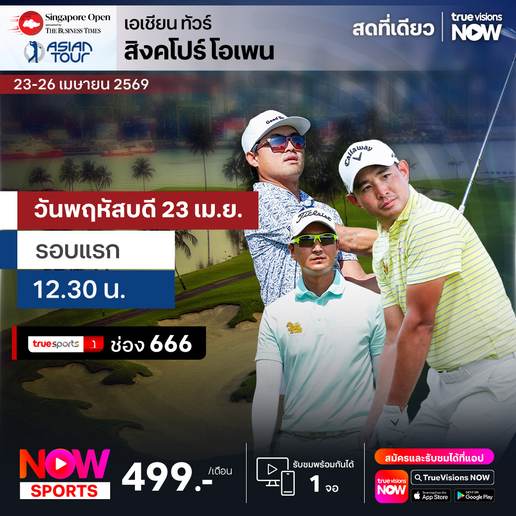 กอล์ฟ เอเชียน ทัวร์ ฤดูกาล 2026 สัปดาห์นี้ นักกอล์ฟชื่อดังจากทั่วทุกมุมโลก มารวมตัวกันเพื่อดวลวงสวิงในรายการ สิงคโปร์ โอเพ่น ที่สนามชื่อดังอย่าง เซนโตซ่า กอล์ฟ คลับ เพื่อชิงโทรฟี่และเงินรางวัลรวม 64 ล้านบาท ร่วมส่งใจเชียร์โปรกอล์ฟไทย ทำสกอร์เบียดแย่งตำแหน่งผู้นำและลุ้นตำแหน่งแชมเปี้ยน ชมสด ครบทุกรอบ ที่ ทรูวิชั่นส์
