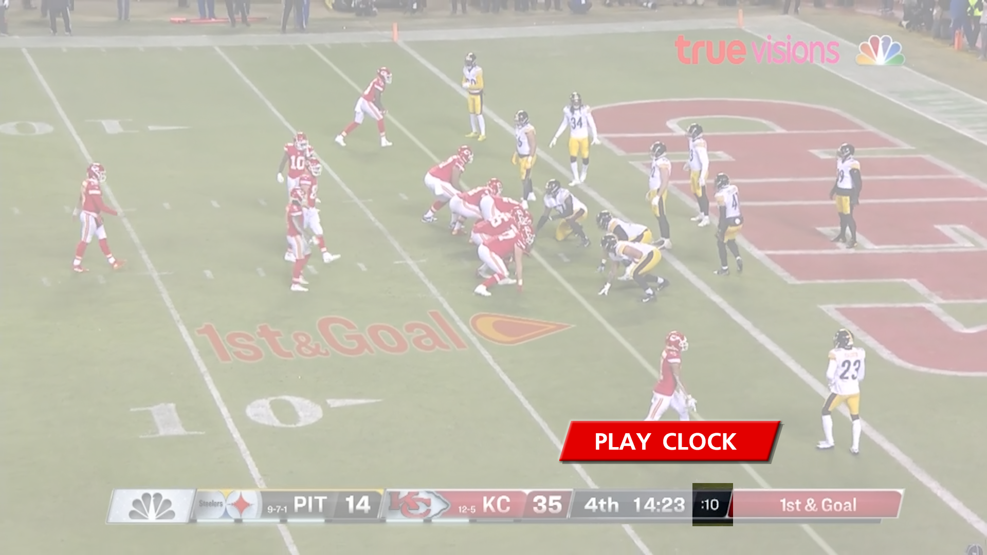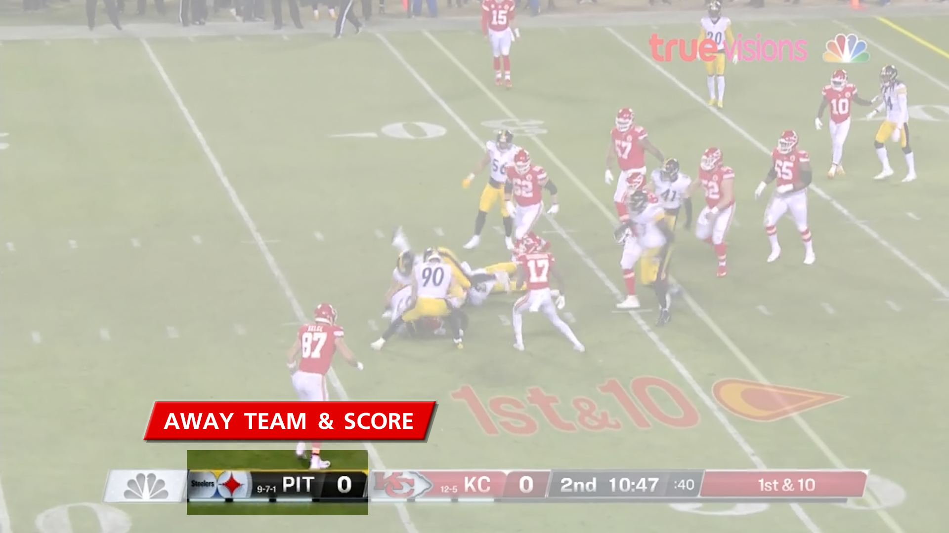 ทีมเยือนอยู่ทางซ้าย เจ้าบ้านอยู่ทางขวา เวลาที่เห็นโปรแกรมเขียนว่า STEELERS @ CHIEFS นั่งหมายถึงว่า สตีลเลอร์ส ไปเยือน ชีฟส์ กลับข้างกับฟุตบอลแบบยุโรป