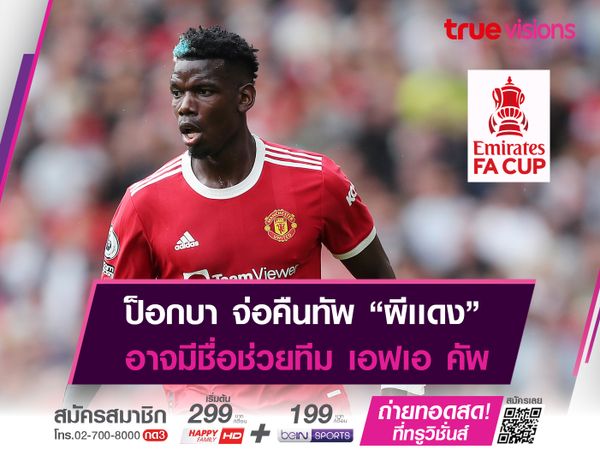"ปีศาจแดง" แมนเชสเตอร์ ยูไนเต็ด ทีมดังเเห่ง พรีเมียร์ลีก อังกฤษ อาจใส่ชื่อของ ปอล ป็อกบา กองกลางค่าตัวเเพงชาวฝรั่งเศส ในการเเข่งขันฟุตบอล เอฟเอ คัพ รอบที่ 4 ซึ่งจะพบกับ "โบโร่" มิดเดิ้ลสโบรช์ จากเวทีลีกรอง "เดอะ เเชมเปี้ยนชิพ" ในวันที่ 5 กุมภาพันธ์นี้