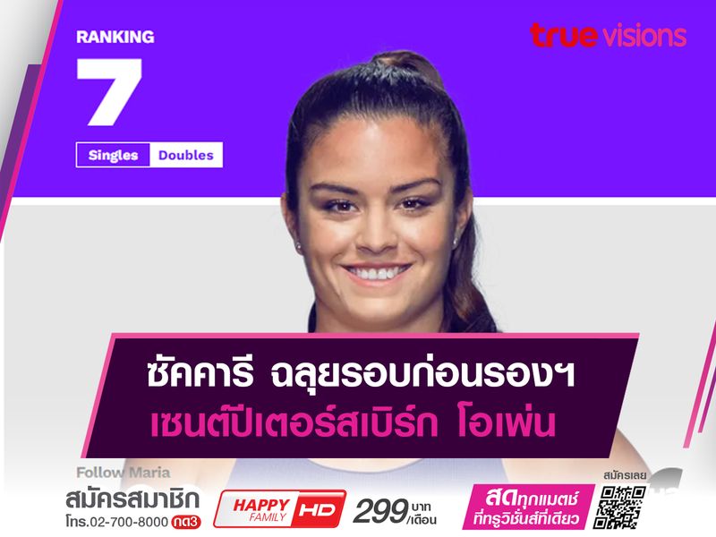 การแข่งขันเทนนิส WTA รายการ เซนต์ ปีเตอร์สเบิร์ก โอเพ่น ประเทศรัสเซียกำลังจะเข้าสู่รอบรองชนะเลิศแล้ว โดยในรอบที่ผ่านมา มือ 1 ของรายการและมือ 7 ของโลกจากกรีซ มาเรีย ซัคคารี ยังเก็บชัยได้ในคืน 9 ก.พ. ที่ผ่านมา เอาชนะ อีแคทรีน่า อเล็กซานโดรว่า 2-0 เซ็ต 6-2 และ 6-4