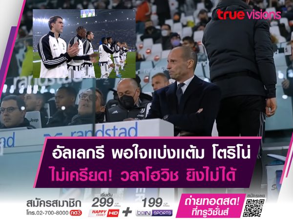 มัสซิมิเลียโน่ อัลเลกรี กุนซือใหญ่ของ "ม้าลาย" ยูเวนตุส ทีมดังเเห่งเวที กัลโช่ เซเรีย อา อิตาลี ยืนยันว่าไม่ใช่เรื่องเสียหายที่ลูกทีมเสมอกับ "กระทิงหิน" โตริโน่ 1-1 ในเกมดาร์บี้เเมตช์ตูริน เมื่อช่วงดึกที่ผ่านมา(19 กุมภาพันธ์) ทั้งที่พวกเขาเป็นฝ่ายออกนำไปก่อนในช่วงครึ่งเเรก