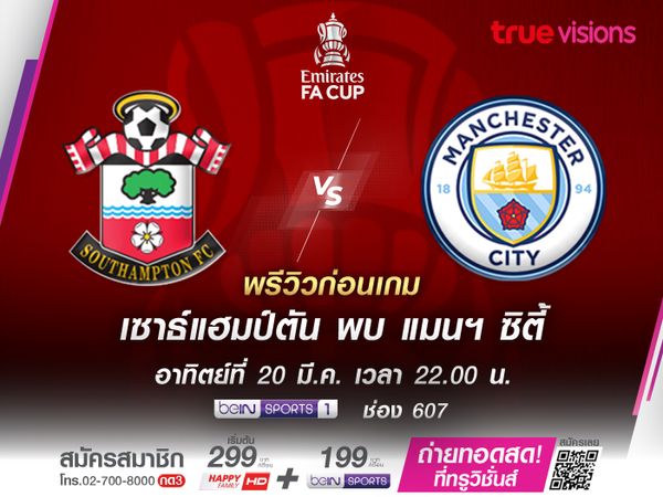 ศึกเอฟเอ คัพ อังกฤษ รอบก่อนรองชนะเลิศ เซาธ์แฮมป์ตัน จะเปิดบ้านรับการมาเยือนของ แมนฯ ซิตี้ โดยเกมนี้ทีมนักบุญต้องเจองานหนักไม่น้อย หลังช่วงนี้กำลังฟอร์มตกแพ้มา 3 เกมติดต่อกัน ขณะที่ทีมเรือใบสีฟ้าแม้จะเริ่มจะสะดุดในช่วงหลังแต่ยังถือว่าเล่นได้น่ากลัว และพวกเขาหวังชนะในเกมนี้เพื่อเรียกความมั่นใจกลับคืนมาอีกครั้ง