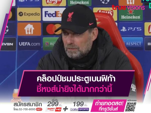 เจอร์เก้น คล็อปป์ กุนซือของ ลิเวอร์พูล ชมนายทวารของ เบนฟิก้า เซฟได้ดี ไม่อย่างนั้นหงส์แดงน่าจะยิงได้มากกว่านี้ หลังบุกชนะได้ก่อน 3-1 ในศึก ยูฟ่า แชมเปี้ยนส์ ลีก รอบ 8 ทีมสุดท้ายนัดแรก เมื่อคืนวันอังคารที่ผ่านมา